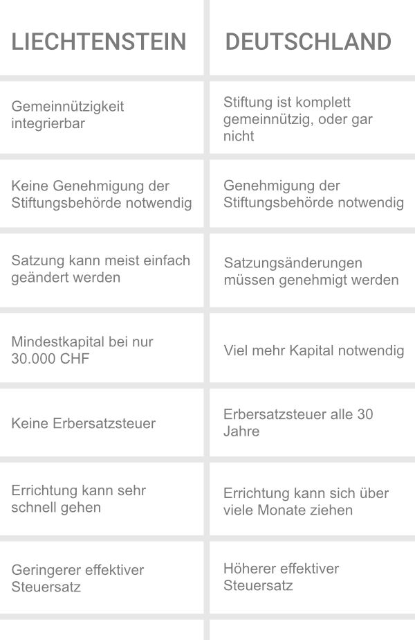Vorteile Liechtenstein-Stiftung gegenüber deutsche Stiftung